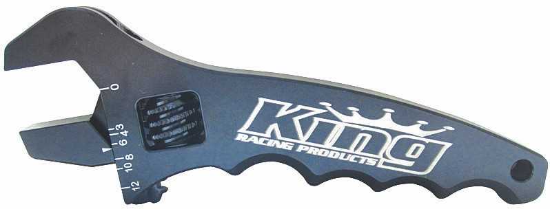 KING RACING PRODUCTS has designed this trick new fully adjustable “AN” Line Wrench. It never seems to fail that when you need a certain size “AN” Wrench you can never find it. Well here is the fix to that problem, this Wrench is fully adjustable from Size #3 to Size #12. The thumb adjustment makes changing sizes quick and easy. Machined From Billet Aluminum And Anodized Black!!!