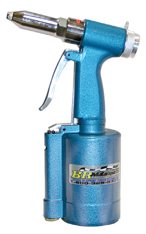 HEAVY DUTY CAST Aluminum Housing with a Powder Coated Finish. Large Powerful Diaphragm Pump for easy rivet pulling, completely rebuildable. Comes with 3/32”, 1/8”, 5/32”, and 3/16” Heads. Perfect for Sprint Car applications. Works Off Any Air Compressor.