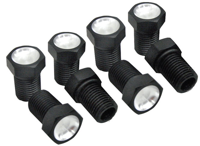 CNC MACHINED FROM from Billet Stock. These Plugs are designed to replace your Down Nozzles and are not effected by heat like the Plastic Style (they can also be used to plug Up Nozzles as well). Smooth 1/2” Rolled Threads with High Temp O-Ring for a perfect seal. Each Kit Has 8 Plugs Anodized For Protection!