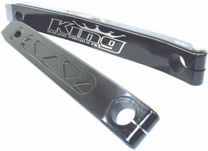 King Racing Product's New Billet Rear Torsion Arms are the strongest most durable Rear Arms on the market!! Machined from Aerospace Aluminum and atomically broached for ultimate performance and durability. The trick part is that the Right Rear is completely straight so the Arm won't bend or flex like the others on the market. The Left Rear has a slight offset completely machined in it to clear the Left Rear Tire. Outlaw Proven By Jason Sides!!
