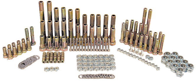 BOY THIS WILL make building a car a lot easier, plus it’s much cheaper than a Titanium Kit, and is even stronger. These 4130 Tubular Bolts exceed 150,000 PSI Tensile Strength as opposed to 6 AL-4V Titanium at 130,000 PSI and it comes with 117 pieces, including Torque Ball to Motorplate, Rear Motorplate to Chassis, Engine Block to Motorplates, Jacobs Ladder to Chassis, Jacobs Ladder to Birdcage, Master Cylinder Mounting, Bumper and Side Knerfs, Radius Rods to Chassis, Shocks to Chassis and Front Axle, R/S Steering Arm, Radius Rods to Front Axle, Tie Rod/Drag Link - Combo Arm, Seat to Chassis, L/F Brake Caliper, Brake Pedal, Pitman Arms, Front Axle to Panard Bar, Shocks to Rear Arms, Top Birdcage Bolts to Radius Rod, Etc., Etc. These are the Trickiest Chromoly Bolts on the Planet and are Heat Treated for Extra Strength. They feature Rolled Threads, all Washers in this Kit are Stainless and all Bolts are Aerodite Plated for Protection. Also All The Nuts Are The Thin Half Nut Nylock Style.