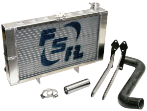 This Ultra Lightweight radiator is used exclusively on the WoO Tour by Jason Sides. This Radiator Design is manufactured to bolt directly to your Engine Block and stay with the Motor at all times. If you have ever had to change a Motor at the Races then you've had to drain the water and worry about getting burnt or where to drain your coolant!! Well forget those problems because you can remove and install your Motor with the Radiator attached all at the same time, even your spare Engine can be ready to go with water in it. This Radiator is the wave of the future. The Double Cross Flow Design, incorporated with the Visteon Core make it the cooliest running Radiator available. This unit is so complete that it comes with the Mounting Brackets to mount it to the Engine Block, Radiator Lower Hose and the Aluminum Hose Adaptor & Hose Clamps. This Is Truly An Awesome Radiator And Is Built To last!!