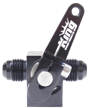 Here is the trickest, lightest Fuel Shut Off you can buy. The billet construction is machined perfectly and the stainless inner rotary valve has an ultra-smooth port design to increase flow. The bottom of the shut off has a 10/32 threaded hole so you can mount it to your steering gear locator or just mount it inline. #6 male ends & anodized black for added protection