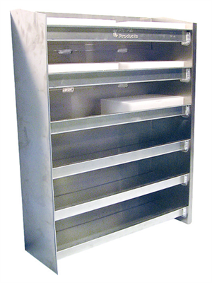 A REAL IMPROVEMENT over the competitions model. Now you can store 12 sets of quick change gears in their cases. This all aluminum storage rack is designed to mount to your trailer wall or inside a cabinet deep lip pocket keep the Gear Boxes from falling out. Heliarch Welded, Very Tough, Built To Last! 12 Set Gear Rack.
