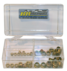 TRUE AIRCRAFT LOCKING Jet Nuts features a Built-In Washer and a Reduced Hex Head. For example a Standard 3/8” Nut uses a 9/16” Wrench, a 3/8 Jet Nut uses a 7/16” Wrench. Plus they are Very Very Hard, tougher than Grade 8. Hundreds of uses on your Sprint Car. Each Kit Has 40-pieces total - 10 Of Each 10/32”, 1/4”, 5/16”, 3/8” & A Handy Carrying Case.