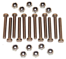 JUST LIKE OUR Titanium Kit (found in our Titanium & Lightweight Accessories Section). But made of High Grade. 12 Stainless 10/32” N/F Bolts and 12 10/32” Steel Nylock Nuts. This kit will attach Front and Rear Bumpers as well as both Side Knerfs on any Sprint Car. Very Handy! Everyone Should Keep An Extra Set In The Trailer For Emergencies. 24-Piece Kit.