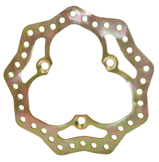 FOR TRACKS THAT demand a lot of Brakes. Many teams have had Aluminum Rotors gaulding up to the point of knocking the Caliper off its Mount. This Steel 10 3/4” Rotor is the answer. Superior braking over Aluminum Rotors. Built to last forever. Scalloped O.D. with Lightening Windows and Holes reduces the overall weight of this Rotor drastically. The Only Rotor That Out Performs This One Is The New Titanium Left Front Style. Weighs 3.5 pounds.