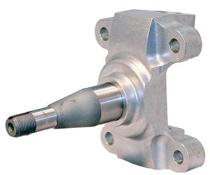 THESE SPINDLES USE our Splined Front Hubs as well as using other styles and brands. Available in 2024 T 351 Billet Aluminum, Heat Treated Spud Silicon Bronze Bushings installed and Pin Fit. These Are The Best Long Nose Spindles On The Market!!
