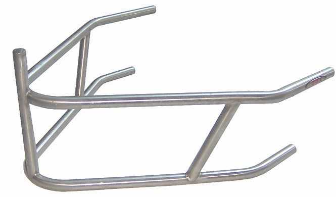 Triple X's Midget Stainless Steels Rear Bumper with Braces. The Braces help avoid push truck (and other cars) from jumping the Bumper, and getting into the tank. Polished to perfection. CNC Bent And Jig Built For Quality And Exact Fit!