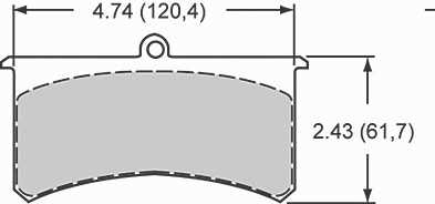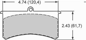 This is Red Devil's 4 3/4" High Tech Brake Pad. Measures from left to right 4.74 (120,4) and from top to bottom 2.43 (61,7). Click View More Images to see the Brake Pads Compound Chart.