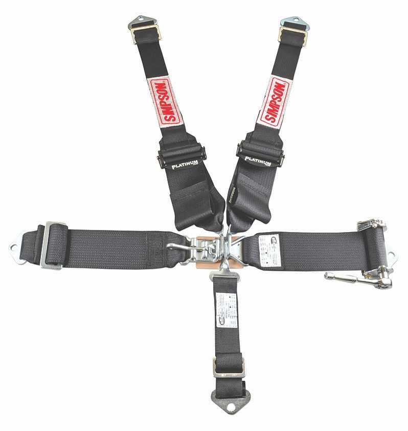 The name SIMPSON says it all. The World's Leader in safety innovation has designed these New 5-Way Platinum Seat Belts for the racers that want the best. The Left Side Lap Belt has a 1/4 Drive ratchet that can tighten you down tighter that you can imagine. The Shoulder Harnesses have a 2" wide belt to accommodate the Neck Restraint System of your choice and at the shoulder adjustment it steps up to 3". We personally run these belts on our house car. Blake absolutely loves them. Black Only!!