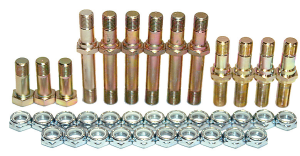 THIS AWESOME 36 Piece Kit allows you to have a Steel Stud instead of a Through Bolt for your Radius Rods to Chassis attachments, as well as the Tie Rod & Drag Link. Just slide the Stud through the Chassis Bung and tighten up the supplied 1/2” Nylock Half Nut. You’ll then have a Steel Stud sticking out of the spud, slide on your Radius Rod and install another supplied Half Nut and your done. This setup allows you to change a Radius Rod in seconds. One Nut off, one Nut on, your done! This Kit does all your Radius Rods, Drag Link, and Tie Rod. Plus as a bonus you get the 3 half inch Through Bolts for the Front Axle. A Great Way To Save Tons Of Time On Red Flags!