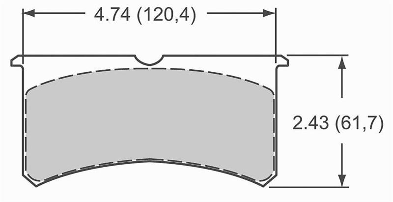 This is Wilwood's 4 3/4" High Tech Brake Pad. Measures from left to right 4.74 (120,4) and from top to bottom 2.43 (61,7). Click View More Images to see the Brake Pads Compound Chart.